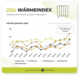 DAA beobachtet im 3. Quartal 2025 eine weiterhin verhaltene Nachfrage nach allen Heizungssystemen. Zum Quartalsende gibt es Bewegung nach oben, vor allem bei den fossilen Heizungssystemen. Dennoch ist das Interesse an erneuerbar betriebenen Heizungen, vor allem der Wärmepumpe, bei DAA durchgehend größer. Insgesamt zeigt das vergangene Quartal deutlich, dass der […]